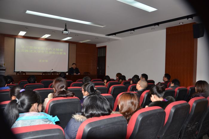 王少华首先传达了学校思想政治教育研究会2012年年会暨换届大会上校党委书记王少安的讲话精神,切实把学习贯彻党的十八大精神作为首要政治任务,紧紧围绕立德树人的根本任务全面提升育人水平,密切结合育人工作实际深入开展理论与实践研究。接下来,与会教师分别从不同角度、不同层面出发,畅谈近年来在党建与思想政治工作方面取得的经验与成果,深入研究新形势下党建与思想政治工作的规律和特点,积极探索加强和改进党建与思想政治工作的有效途径。