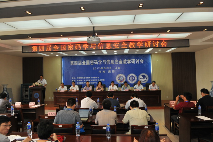 2012年8月2日至4日,由中国密码学会教育工作委员会主办、我校计算机学院承办的“2012年第四届全国密码学与信息安全教学研讨会”在我校隆重召开。来自国家密码管理局、北京电子科技学院、哈尔滨工程大学、中国科学院、北京航空航天大学、西安电子科技大学、贵州大学、成都信息工程学院、桂林电子科技大学、北方工业大学、北京邮电大学、焦作市委机要局等众多国内科研院校的专家学者60余人参加了本次会议,围绕当前密码学和信息安全教育方面的最新成果展开了广泛而深入的探讨。学校有20多名师生参加了会议。