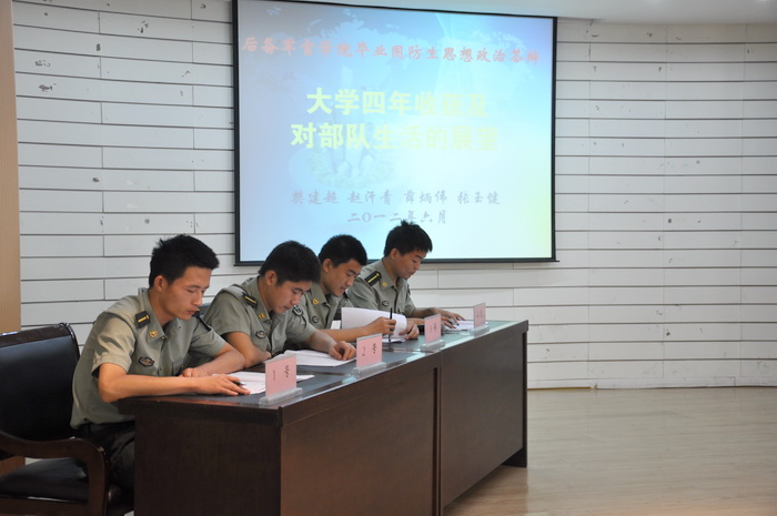 为进一步深入开展“理想信念、人生志向、专业道路、生活态度”教育,打牢国防生听党指挥、服务人民、履行使命、建功军营的思想政治素质基础,后备军官学院在毕业国防生中开展了思想政治答辩工作。