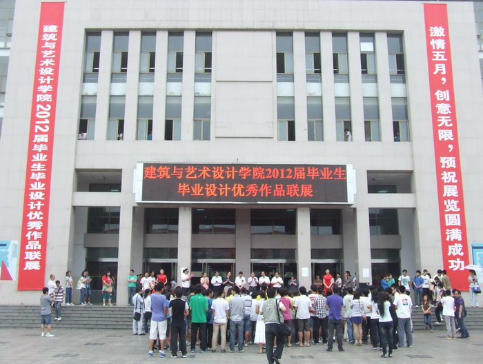 激情五月,创意无限。5月22日上午,建筑与艺术设计学院2012届毕业生毕业设计作品联展开幕式在三号教学楼前举行。副校长张战营教授、副校长景国勋教授及有关职能部门负责人、万方科技学院有关领导、该院领导班子全体成员和部分学生参加了开幕式。开幕式由该院副院长韩宏斌主持。