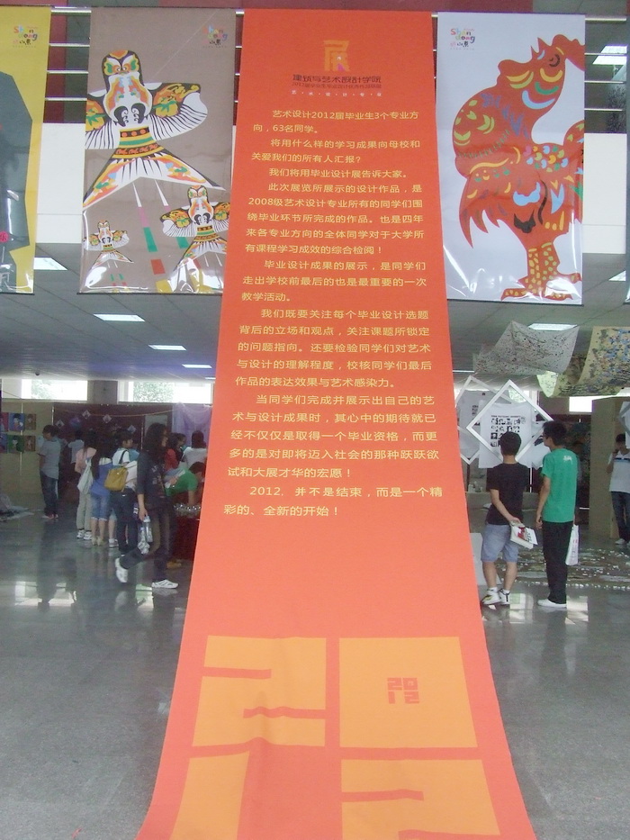 开幕式结束后,与会领导嘉宾、老师和同学们共同参观了展览。本次展览展出的是建筑与艺术设计学院2012届248名毕业生的优秀作品,涵盖艺术设计、建筑学、城市规划、工业设计、广告学5个专业,作品形式有艺术装置、架上绘画、包装、书籍装帧、工业产品、家具艺术、建筑模型、网络动画等,丰富多彩,异彩纷呈。作品题材新颖、构思独特、个性鲜明,贴近生活的设计突出了艺术与设计来源于生活、服务于生活的艺术教育和创作理念。