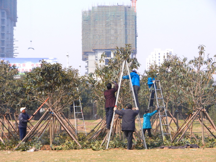 根据学校下达的重点工作安排,后勤集团公司认真部署,多方考察,为学校顺利采购树形良好,符合规格的各种树木提供了保证。在树木栽植过程中,后勤集团公司加强科学种植和科学管理,从挖坑、选苗、栽植、浇水等环节入手,严把质量关,严格种植标准,努力提高树木存活率。截止到3月31日,共栽植大叶女贞、法桐、樱花、石楠、海棠等树木2000余棵,其中种植胸径8-9cm以上大叶女贞230棵,小大叶女贞1000余棵,胸径15cm以上法桐184棵,樱花、海棠、石榴、蔷薇等花灌木800余棵,圆满完成今春植树工作,栽植效果良好,深受广大师生的好评。