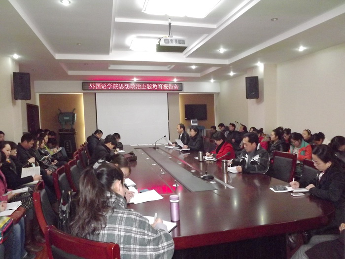 3月20日下午外国语学院“教书育人,在教学活动中彰显教师优秀品德”教工思想政治主题教育报告会在文科综合楼311会议室召开。外国语学院党委书记赵昉做主题发言,会议由外国语学院副院长李惠敏主持。外国语学院全体教职工参加了会议。