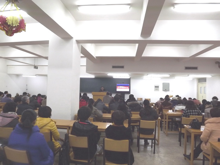 何定东以“责任的力量”为主题向图书馆广大职工阐述了“两会”精神。他首先以图解的方式讲解了提案议案的提出和处理的全过程,并阐释了近年来的一些已被落实的提案。接着,他主要讲解了“稳经济、保民生、兴文化”的“两会”主要工作思路,重点阐述了温家宝总理在十一届全国人大五次会议上的工作报告中的经济发展、教育科技等的宏伟蓝图。