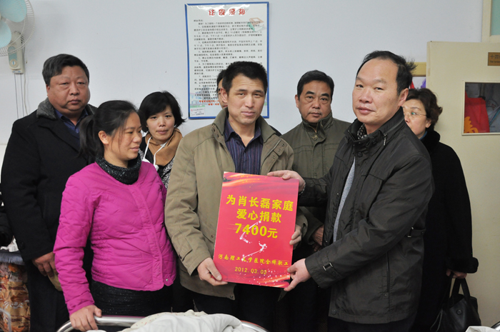 人间自有真情在,我校医院同事得知此事后,深感同情,自发为肖长磊同志捐款。医院领导也向医院全体员工发出倡议,希望全体员工伸出援助之手,帮助正处于困难的同事肖长磊和她的家庭度过难关。