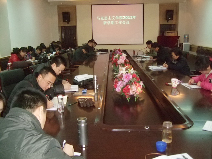 为传达贯彻学校2012年年度工作会议精神,安排部署马克思主义学院新学期主要工作,2月21日下午,马克思主义学院新学期第一次全体会议在文科综合楼202会议室召开。学院党政领导和全体教职工参加了会议,由学院党委书记李照修主持。