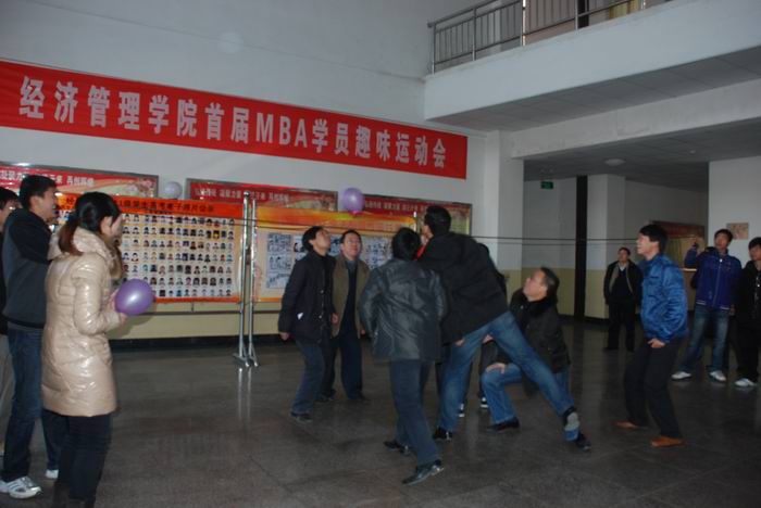 12月24日下午,河南理工大学经济管理学院首届MBA师生联谊赛在经管学院楼拉开了帷幕,2011级30余名MBA学生和10余位经管学院教师参加了比赛。