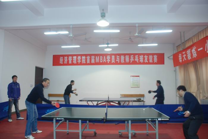 本次MBA师生联谊赛共分为六个部分,分别为“拔河赛”、“吹气球赛”、“乒乓球赛”、“台球赛”、“双生赛”、“卡拉KO赛”。赛场气氛紧张激烈,比赛异常精彩,朝气蓬勃的学员和洋溢着运动激情的教师始终对阵的兢兢业业,互不相让。全力的争夺,漂亮的抢断、巧妙的过招、激烈的快攻、默契的配合,队员们在赛场上大秀球技、牌技、歌技,高潮迭起,观众们在场外加油助威,掌声不断。特别是在卡拉OK比赛现场,拉拉队员们还给参赛选手们送上了精心准备的小礼物。