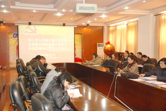12月13日下午,经管学院在该院楼会议室召开全体教职工大会,深入学习贯彻卢展工书记在全省部分高校负责人座谈会和在我校调研时的重要讲话精神,会议由该院党委副书记张世君主持,全体教师参加了此次会议。