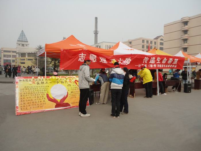 志愿理工大爱,传递生命希望。11月26日,计算机(软件)学院“爱在理工,传递生命希望”爱心募捐活动在学校拉开帷幕,全校师生和社会广大爱心人士,纷纷慷慨解囊,捐款相助,在理工大学校园里谱写了一曲爱的乐章。本次活动是为该院2008级网络3班杨倩同学的胞弟小杨博所做。