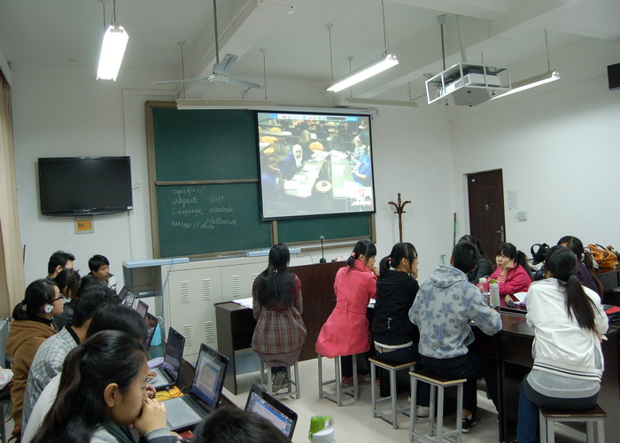 外国语学院与美国东卡罗莱纳州立大学(East Carolina University)合作同步开设互动网络视频课程《Global Studies》于10月12日在外国语学院开课。该课程是在国际处、现代教育技术中心的大力支持下,外国语学院经过几个月的精心筹备和试运行之后完成的,目前已正式开课一个月。