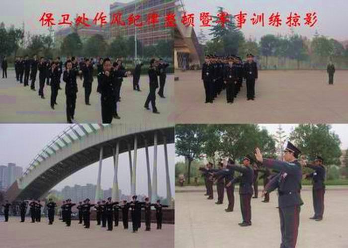 以“创建文明服务窗口竞赛活动”为契机,保卫处紧密结合安全工作实际和保卫工作特点,从10月25日起至11月底,为期一个月的“作风纪律整顿暨军事训练活动”,活动紧紧围绕保卫处“落实工作制度,严肃工作纪律,规范执勤行为”的年度工作思路,以“纪律严明,作风优良,素质过硬,业务精通”为目标,以警容警姿、队列、交通指挥、消防技能、擒敌拳等为主要军训内容,以解决队伍中存在的执勤不规范、责任心不强为整顿目标,着力解决保卫队伍在精神状态、自身形象、服务质量、文明执勤、业务技能等方面存在的突出问题。