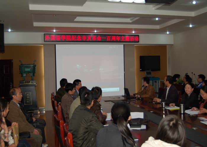 九州辛亥百年杰,半壁东南三楚雄,为了纪念辛亥革命100周年,10月25日下午,外国语学院在文综楼311会议室召开了纪念辛亥革命一百周年的主题活动。外国语学院全体教职工参加了本次活动,活动由外语学院党委副书记王哲主持。