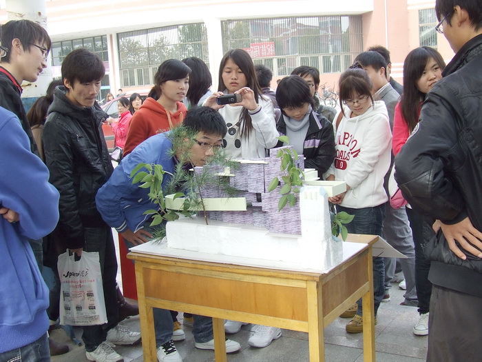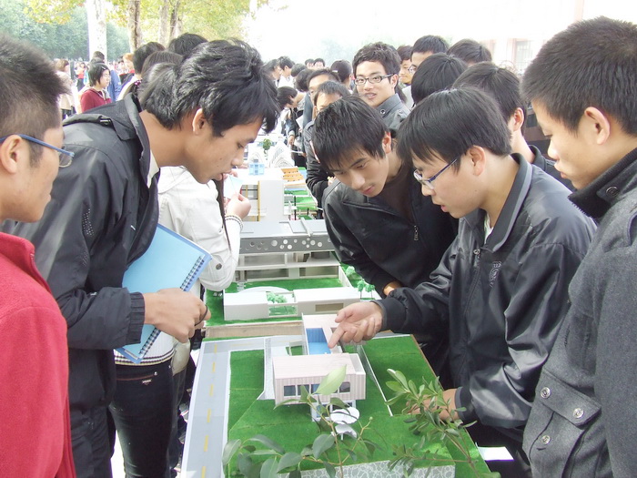 为进一步依托学科专业推进基层班级建设,激发学生对建筑理念的构思与探索,增强学生的动手能力,为全校师生呈现世界级建筑大师设计理念,10月27日上午,由设计学院主办、2010级建筑学专业、城市规划专业3个班承办的建筑大师作品模型展在春秋大道举行。该院院长陈兴义前往参观并指导。