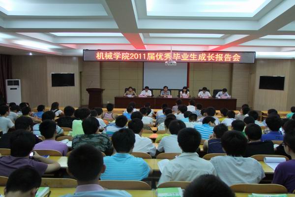 6月22日上午,机械学院在该院205报告厅召开优秀毕业生成长报告会,5名2011届毕业生在报告会上作了精彩发言,该院200多名2010级学生参加了此次报告会。