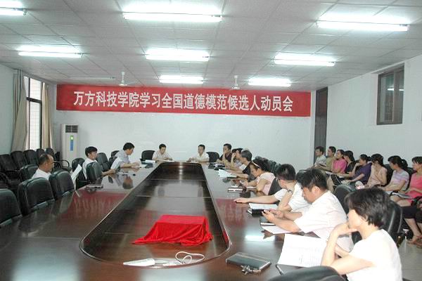 6月17日上午,万方学院在该院办公楼二楼会议室举办向第三届全国道德模范候选人学习的动员会。万方学院党委书记王建中、常务副院长郑伦仁、院党委副书记杨玉海参加动员会,各职能部门负责人、系(部)领导以及全体辅导员参加动员会。动员会由该院党委副书记杨玉海主持。