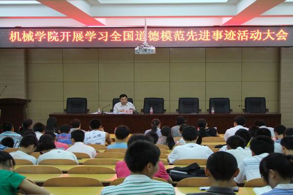 为积极响应学校关于社会主义精神文明建设的号召,加强社会主义道德建设,倡导爱国、敬业、诚信、友善等道德规范,培育文明道德风尚,大力发扬与继承道德模范的高尚品德,在机械学院全院形成学习模范、争当模范的浓厚氛围,自觉实践社会主义荣辱观,努力在全院进一步形成知荣辱、讲正气、促和谐的良好风尚,6月19日下午,机械学院在该院205会议厅召开学习宣传全国道德模范先进事迹动员大会,机械学院党委副书记聂凯主持会议,该院全体辅导员、全体班长和部分学生代表参加了此次会议。