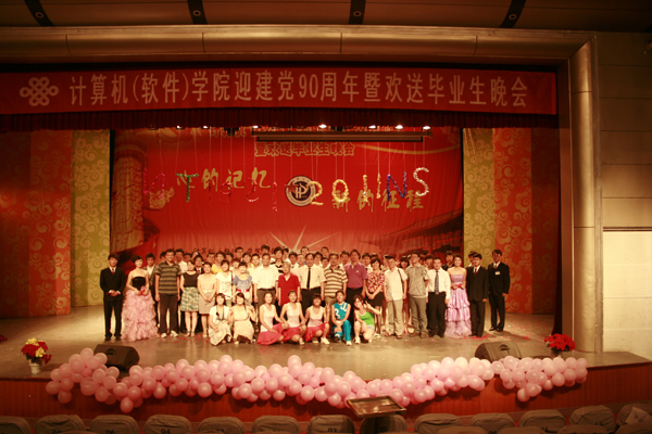 跋涉的步履穿越岁月的峥嵘愈发沉稳矫健,漫卷的旗帜历练时代的风雨更加鲜艳夺目。6月8日晚,计算机学院“心的记忆,新的征程”迎建党90周年暨欢送毕业生晚会在校小礼堂举行。该院党委书记付子义,校工会副主席黄玉,该院副院长张长森、高岩,党委副书记许辉莅临晚会现场,毕业生班辅导员与广大毕业生一起观看演出。