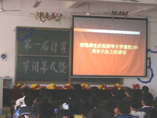 4月26日下午,计算机学院师生学习胡锦涛总书记在庆祝清华大学建校100周年大会上的重要讲话座谈会在院楼101室举行。该院团委书记吴君、各年级辅导员、各班班长、团支书共200余人参加了座谈会。