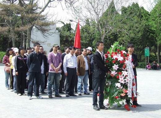 随后,师生来到焦裕禄同志墓前,怀着十分敬仰的心情敬献了花篮,向焦裕禄同志遗像三鞠躬,表达对这位县委书记的好榜样、忠诚的共产主义战士、人民的好儿子的崇敬和思念。在焦裕禄同志墓前,师生党员在鲜红的党旗下,重温了入党誓词。