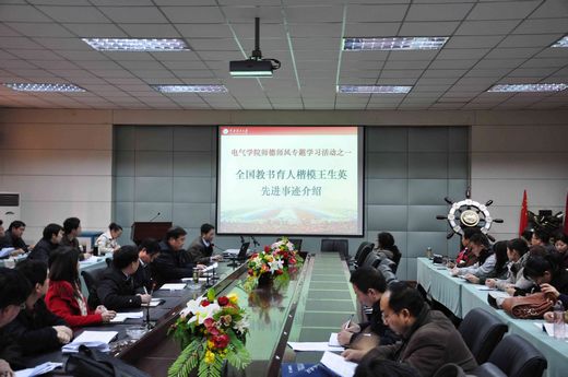 为响应省内各界关于学习王生英先进事迹的号召,进一步加强师德师风建设,全面提高电气学院教职工的道德水平、精神境界和业务能力。该院于近日积极组织开展了向全国教育道德模范王生英同志学习的活动。