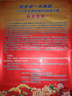 此次大赛得到了学校各级领导的鼎力支持。资环学院领导高度重视,接到大赛通知后立即组织老师、学生,结合教学和科研课题,精心选题,经过半年多的刻苦努力,最终获得了优异成绩。这次比赛是我校注重培养学生动手实践能力的再次完美体现,也是我校学生素质拓展的重要组成部分,是对我校建设创新型高校、培养创新型人才的积极探索。