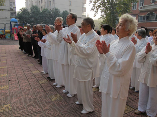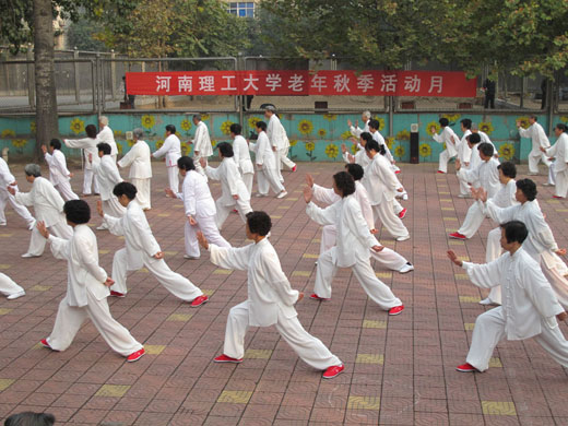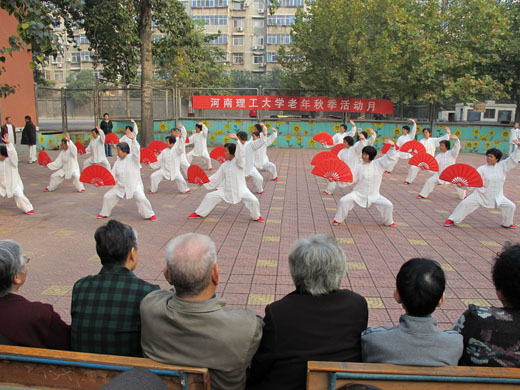 开幕式上,老年太极协会的老同志进行了精彩的太极拳、太极扇表演,博得了老同志们的阵阵掌声。