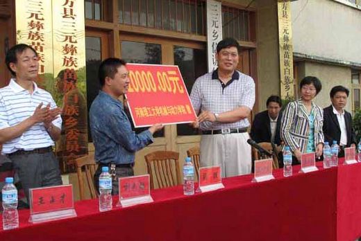 近日,机械学院党委书记王全才一行利用在贵州洽谈招考工程硕士研究生班的机会,将机械学院师生捐赠的1万元捐款送到贵州省大方县三元彝族苗族白族自治乡灾民手中,帮助重灾农户解决生产生活实际困难,同时将机械学院师生捐出的近5000册图书赠给贵州毕节地区工业学校。在三元乡党委组织的捐赠仪式上,王全才代表机械学院师生表示:自然无情,人间有爱;捐赠有限,情谊无价,主动担负更多更大的社会责任,既是社会的要求,也是应尽的义务,今后,机械学院要继续坚持开放办学,努力为贵州地区在人才培养、智力援助、社会救助等方面发挥更大的作用。