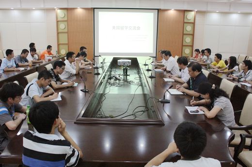 王炜同学首先做报告。针对大家对留美资金方面的顾虑,他结合自己在美国肯塔基大学留学经验及亲身见闻向大家详尽介绍了美国高校研究生奖学金的具体构成和申请条件。同时,他还重点讲解了在申请留学的前期准备中譬如英语考试、递交申请材料等需要注意的相关事项。谈到申请留学的基本条件时,王炜就英语成绩硬性指标、专业和个人背景等为同学们作了认真分析。他认为,大学生应积极利用学校提供的实验设施、设备,丰富实验室工作经历,为成功申请留学积攒能力基础。接着,贾子瑜同学详细讲述了美国大学学习生活、专业设置、考试方法、学分设置等与国内大学的不同之处,并介绍了自己在美国留学积累的学习经验。张一弓同学按照 “衣、食、住、行”四个方面介绍了美国大学生的生活情况。随后,三位留美同学具体回答了同学们提出的问题。