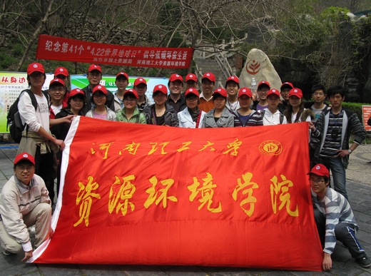为迎接第41个世界地球日的到来,宣传我国第41个地球日“珍惜地球资源,转变发展方式,倡导低碳生活”的主题,引导全社会积极参与节约利用资源、减少碳排放、促进经济发展方式转变的实践,4月22日,资源环境学院联合焦作市国土资源局,组织30余名师生赴云台山世界地质公园开展 “选择低碳生活,共创美好未来”世界地球日主题宣传活动。