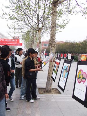 反腐倡廉关系到党的生死存亡、国家的前途命运,廉洁从政关系到人民群众的福祉。本次漫画展以加强领导干部廉洁从政、执政为民,教师廉洁从教和学生廉洁修身教育为主要内容,由建筑与艺术设计学院党委从《河南省反腐倡廉口袋书—廉政漫话》中精选了部分作品,该院2009级艺术设计专业学生制作,运用漫画艺术形象地展示了反腐倡廉制度,对生活中常见的腐败现象进行了讽刺,充分发挥艺术作品在党风党纪教育中的特殊作用。