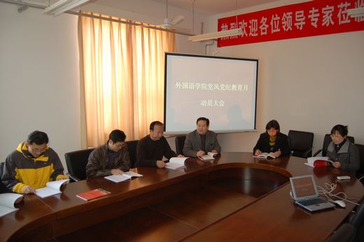 4月1日上午,外国语学院积极响应学校号召,组织机关工作人员及部分教师认真学习《中共河南理工大学纪律检查委员会关于开展党风党纪教育月活动意见》的通知。
