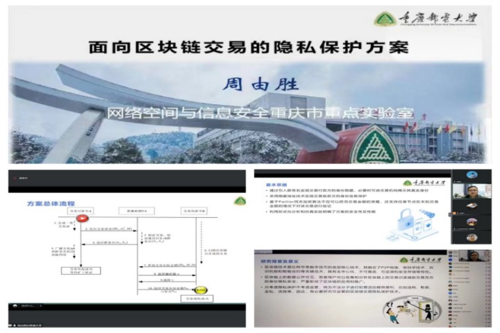 本网讯 (通讯员 彭维平 刘家宝)为进一步推进学科发展、营造良好科研氛围,近日,重庆邮电大学教授周由胜应邀参加计算机学院第三届研究生学术文化节,为计算机、软件学院师生线上作题为《面向区块链交易的隐私保护方案》的学术报告。会议由计算机学院教授彭维平主持,部分教师和课题组研究生参加。