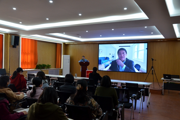 本网讯(通讯员 曹旺儒)11月16日下午,应外国语学院之邀, 北京师范大学外文学院院长、博士生导师苗兴伟教授在线作了题为《新时代外语专业人才培养体系建设》的学术报告,外国语学院全体教师聆听了报告。报告会由该院院长李惠敏主持。