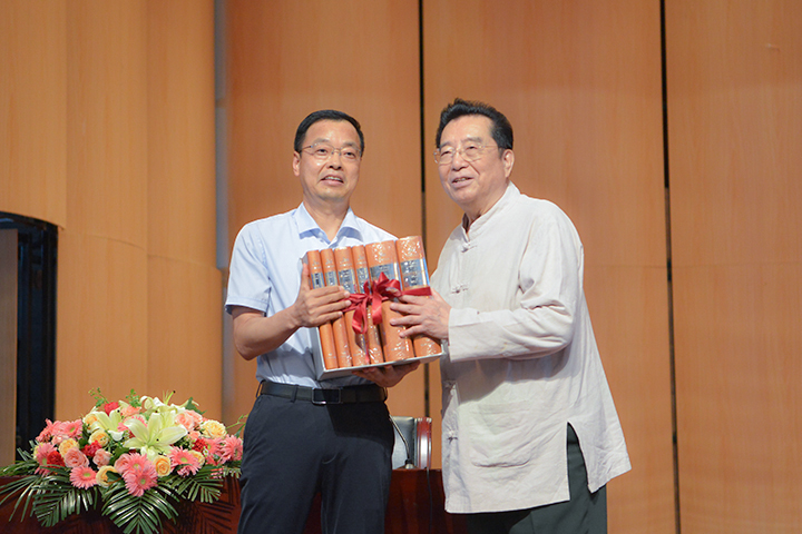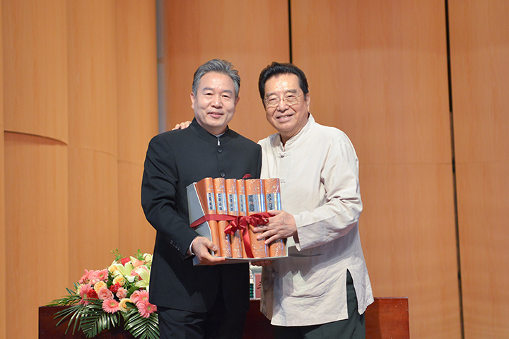 讲座音乐会伊始,李新现代表音乐学院全体师生对李双江的到来表示热烈的欢迎和感谢,并高度肯定了李双江教授受聘为学校特聘教授以来的工作情况。随后,李双江分别向我校图书馆和音乐学院捐赠图书——《新民主音乐文化库》。