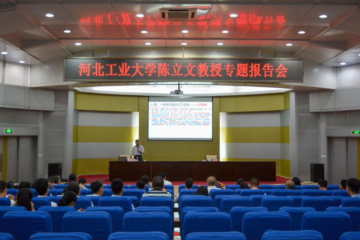 本网讯(通讯员 苑东亮 崔楠 金文凯)为扎实推进我校一流本科专业建设,进一步深化教育教学改革,6月30日下午,河北工业大学陈立文教授在我校力行楼学术报告厅作题为《以专业认证评估为抓手着力推进一流本科建设》的专题报告。教务处、各学院教学院长、专业带头人、教科办主任及教师代表聆听了报告。报告会由教务处副处长吴鋆萍主持。