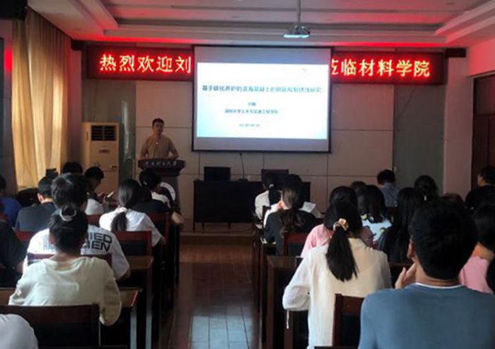 报告会上,刘敏首先介绍了基于碳化养护的滨海混凝土的钢筋抑制锈蚀研究背景,阐述了通过优化预养、碳化制度,实现CO2渗透梯度、渗透深度的精细调控,并达到抑制钢筋锈蚀的最佳效果,建立滨海混凝土的预养、碳化养护工艺,以提高混凝土的耐久性。报告语言精炼、深入浅出富有激情,对科研道路上摸索前进的同学们寄予深切的期望。此次学术交流活动开阔了师生的学术视野,对我校材料学院专业在此领域的开拓进取具有重要的指导意义。