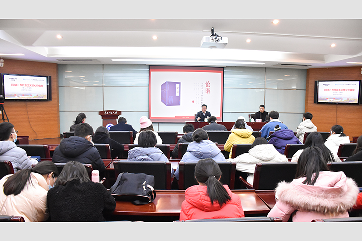 本网讯(通讯员 周晓歌/文 郑智源/图)聆听思想的声音,触碰理论的温度。12月15日下午,青年马克思主义者研习社重点打造的理论学习、交流活动品牌“思政课开讲了”第四期“道德讲堂”准时开讲,社团邀请到马克思主义学院院长郑小九教授、焦作市诗词学会秘书长李乐观在明德楼一楼会议室为60余名师生做了主题为《论语》与社会主义核心价值观的精彩讲座。