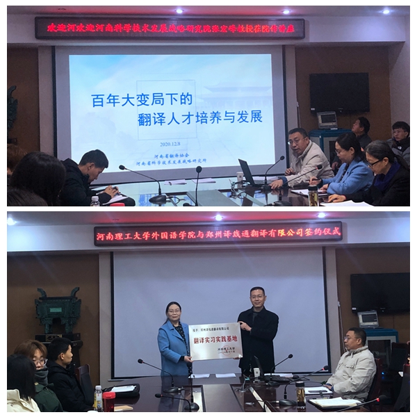 会议伊始,该院院长李惠敏与郑州译线通翻译有限公司代表签订了战略合作协议。随后,张宏峰作学术报告。他首先阐述了河南省翻译产业的基本情况,并对产业现状作了具体分析,指出了当下翻译人才市场中存在的人才分布不均、高级翻译人才不足、口译人才急需等问题。随后,张宏峰表明,翻译人才在就业上有很大语言优势,毕业生就业范围大,就业面广,就业情况良好。最后,他对在场学生提出了要搞好职业生涯规划、提高个人综合素质等几点建议,并以简洁易懂、幽默风趣的语言鼓励学生提升自身格局,扎实双语基础,锻炼语言逻辑和语言组织能力,努力为翻译行业的发展做贡献。讲座内容丰富,主题突出,在场学生认真聆听,积极互动,纷纷表示受益颇丰。