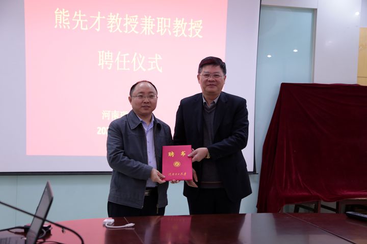 仪式上,邹友峰分别为闻徳保、熊先才、胡勇颁发了聘书。聘任仪式结束后,三位教授分别作了学术报告。