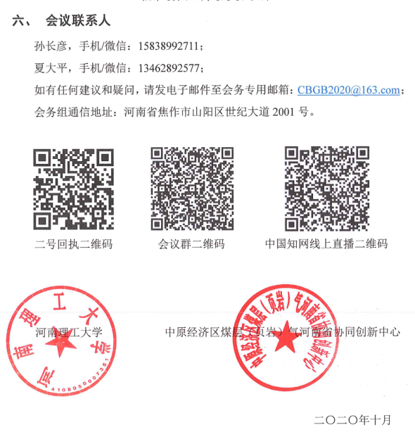 ① 已发回会议一号通知回执的代表请于2020年11月2日24时前返回会议二号通知回执,回执表电子邮件发给:CBGB2020@163.com;