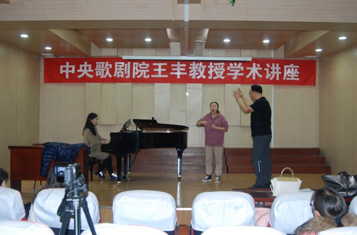 12月11日上午,应学校音乐学院邀请,著名男高音歌唱家、中央歌剧院教授王丰于文综楼六楼音乐厅为该院师生作学术讲座。音乐学院近百名师生到场聆听,讲座由音乐学院院长李新现主持。