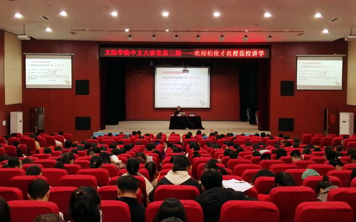 11月22日晚,陕西师范大学博士生导师柏俊才教授受聘为我校兼职教授,授聘仪式暨学术报告会于北校区小礼堂举行。文法学院院长冒建华出席受聘仪式并为柏俊才教授颁发聘书,学院全体师生参加仪式并聆听了本次讲座。