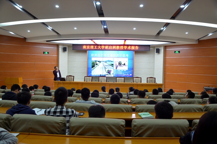 11月6日晚,应能源学院的邀请,南京理工大学教授胡启洲在能源学院104学术报告厅作了题为《欧洲自行车交通的若干思考》的学术报告。该院19级交通工程专业共100余人聆听了报告会。