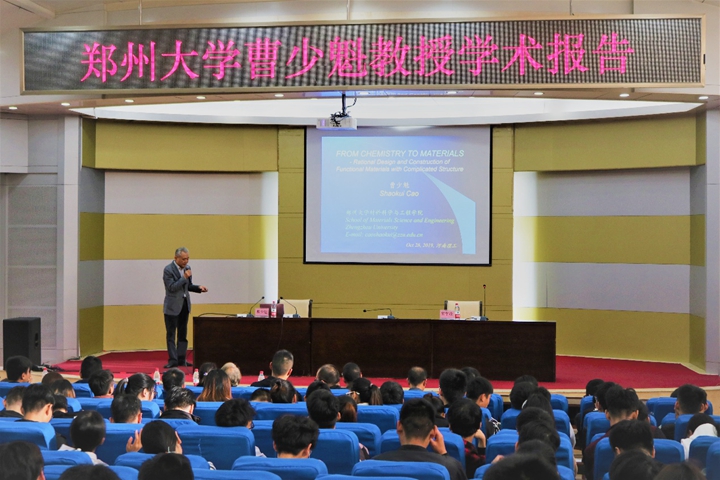 10月28日下午,应材料科学与工程学院之邀,郑州大学教授曹少魁在力行楼学术报告厅作了题为《从化学到材料学》的学术报告。讲座由该院院长管学茂主持,百余名师生共同聆听了本场讲座。