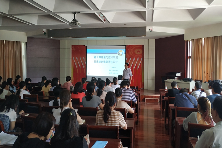 6月18日下午,应医学院邀请,郑州大学张振中教授在北校区图书馆报告厅作了题为《基于微能量与微环境的三元纳米递药系统设计》的学术报告。报告由该院院长马望主持, 该院全体教师和部分学生聆听了报告会。