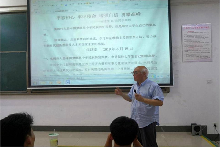 6月19日下午,我校材料学院特聘教授、博士生导师牛济泰院士在三号教学楼211室作了题为《不忘初心,牢记使命,增强自信,勇攀高峰》的德育宣讲报告,相关专业师生共同聆听了报告会。