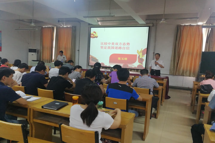 6月11日下午,工程训练中心在中心多媒体教室举办了形势政策专题报告会,邀请校关工委德育宣讲专家张玉培教师作题为《比较中美双方态势,坚定我国道路自信》的报告。中心全体教职工、机械学院机制系教工党员和机械、材料学院部分学生参加了活动,中心党总支书记王立东主持报告会。