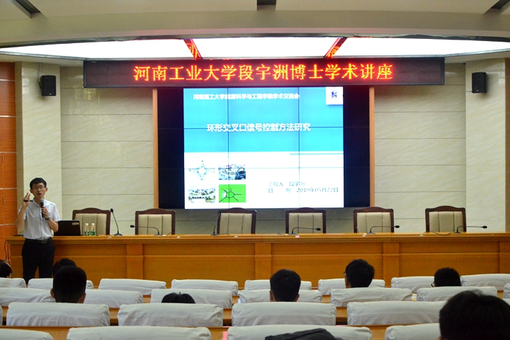 5月22日下午,河南工业大学博士段宇洲应邀在我校能源学院104学术报告厅作题为《环形交叉口信号控制方法研究》的学术报告。能源学院交通工程专业100余名师生聆听了报告会。