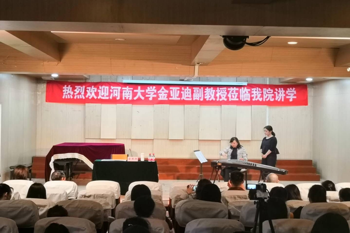 4月3日下午,应我校音乐学院邀请,河南大学副教授金亚迪作题为《古筝演奏中技巧的运用与情感把握》学术讲座,讲座由音乐学院院长李新现教授主持,该院近百名师生共同聆听。
